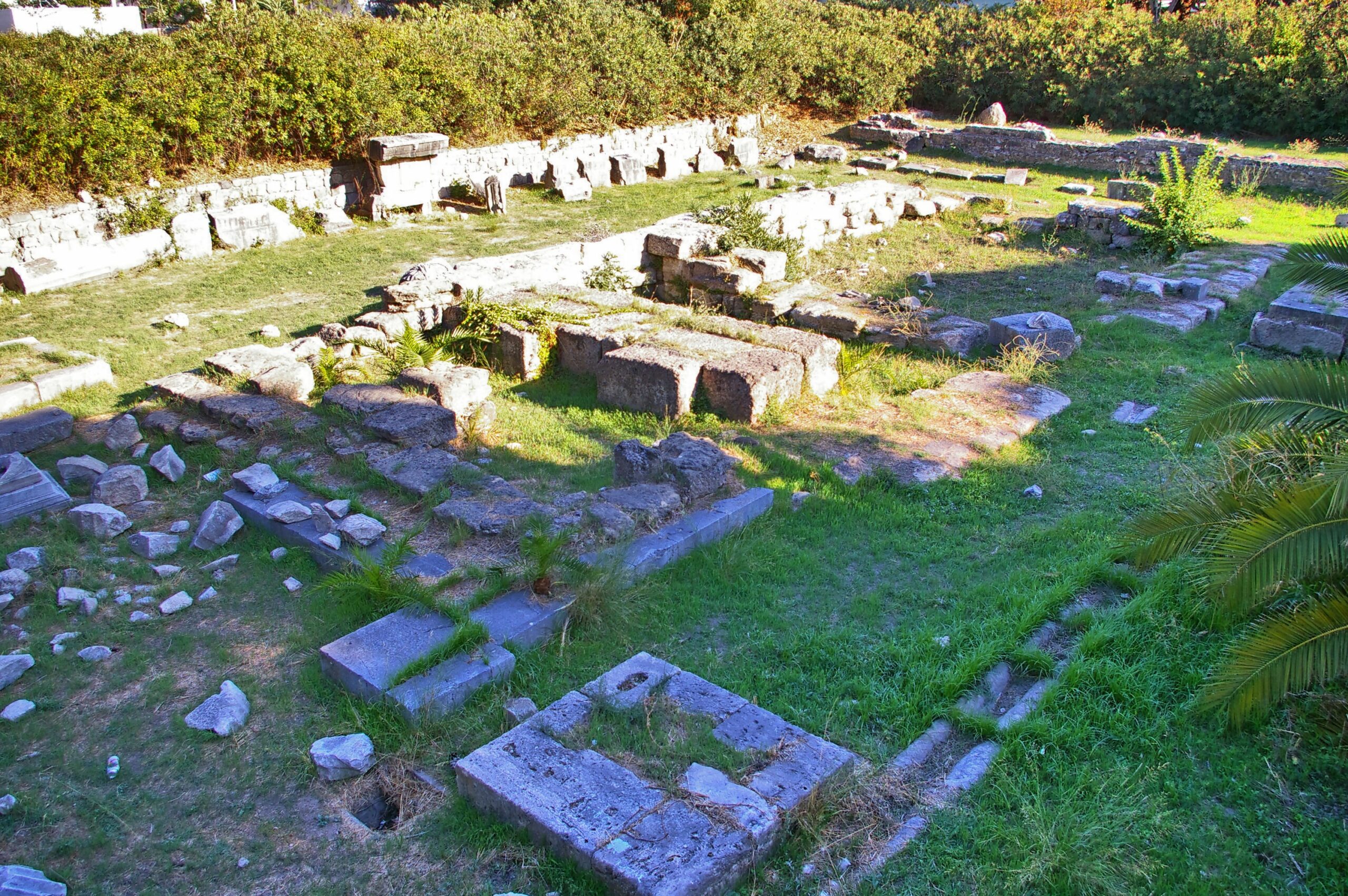 Mára magáról az oltárból csak egy négyszögletes alapszakasz, a lejtős rámpa és egy keresztirányú kőfal látható. A Dionüszosz-oltár környékén található egy dór rendi templom is, amelyet valószínűleg Dionüszosznak szenteltek és két téglalap alakú építmény, amelyek közül az egyik egy szobor alapja, a másik pedig egy másik alap vagy egy régebbi oltár.