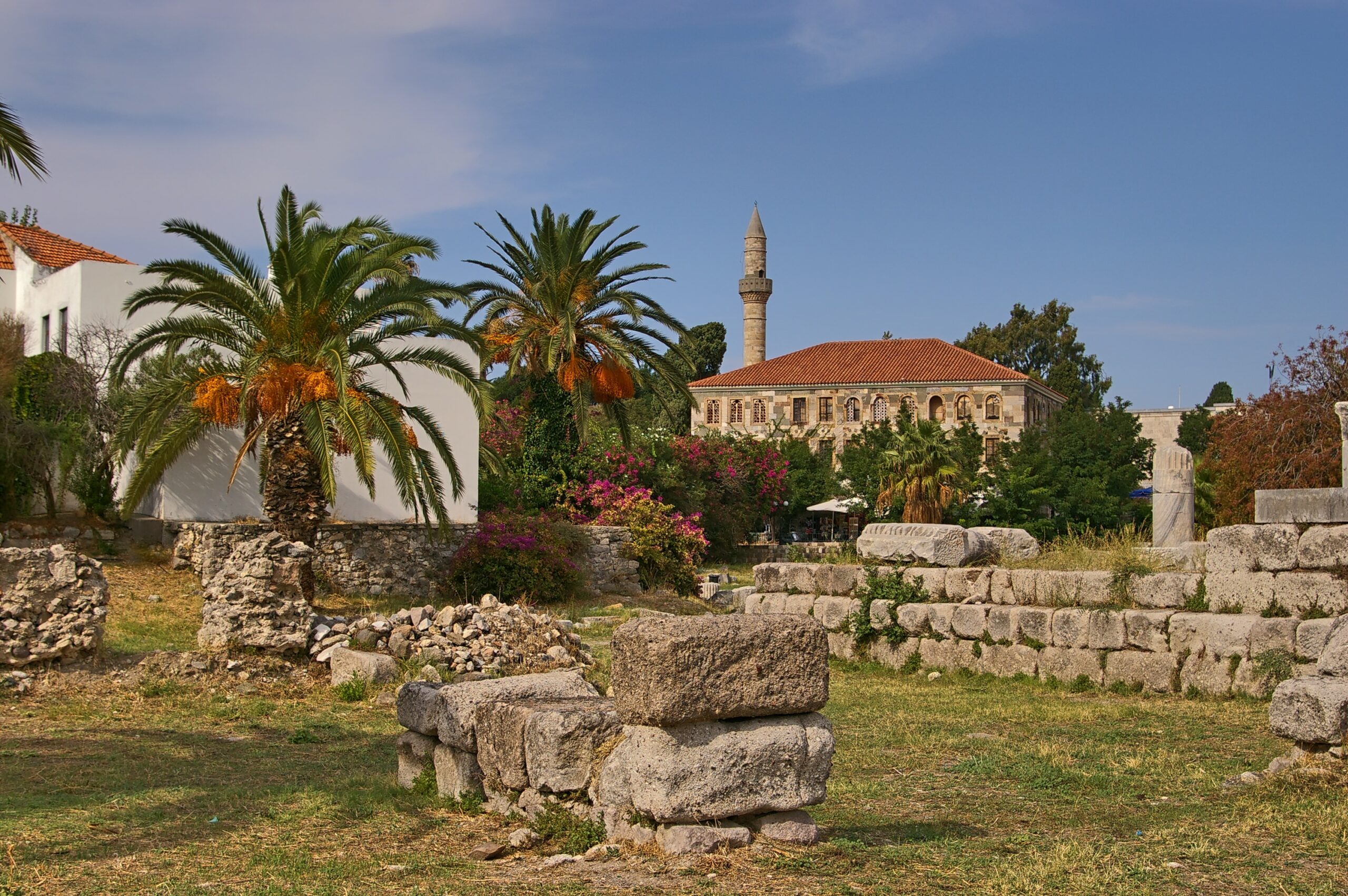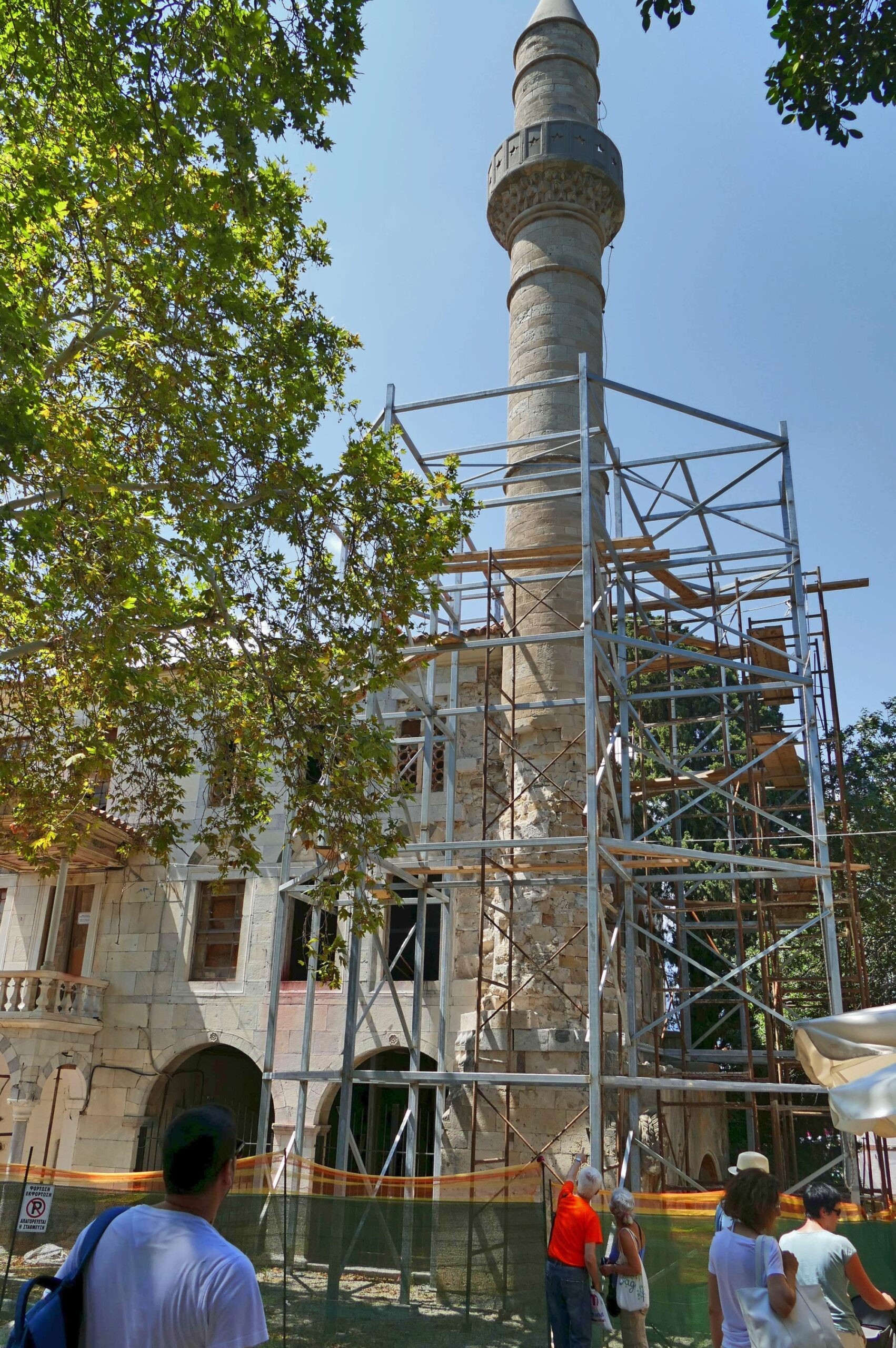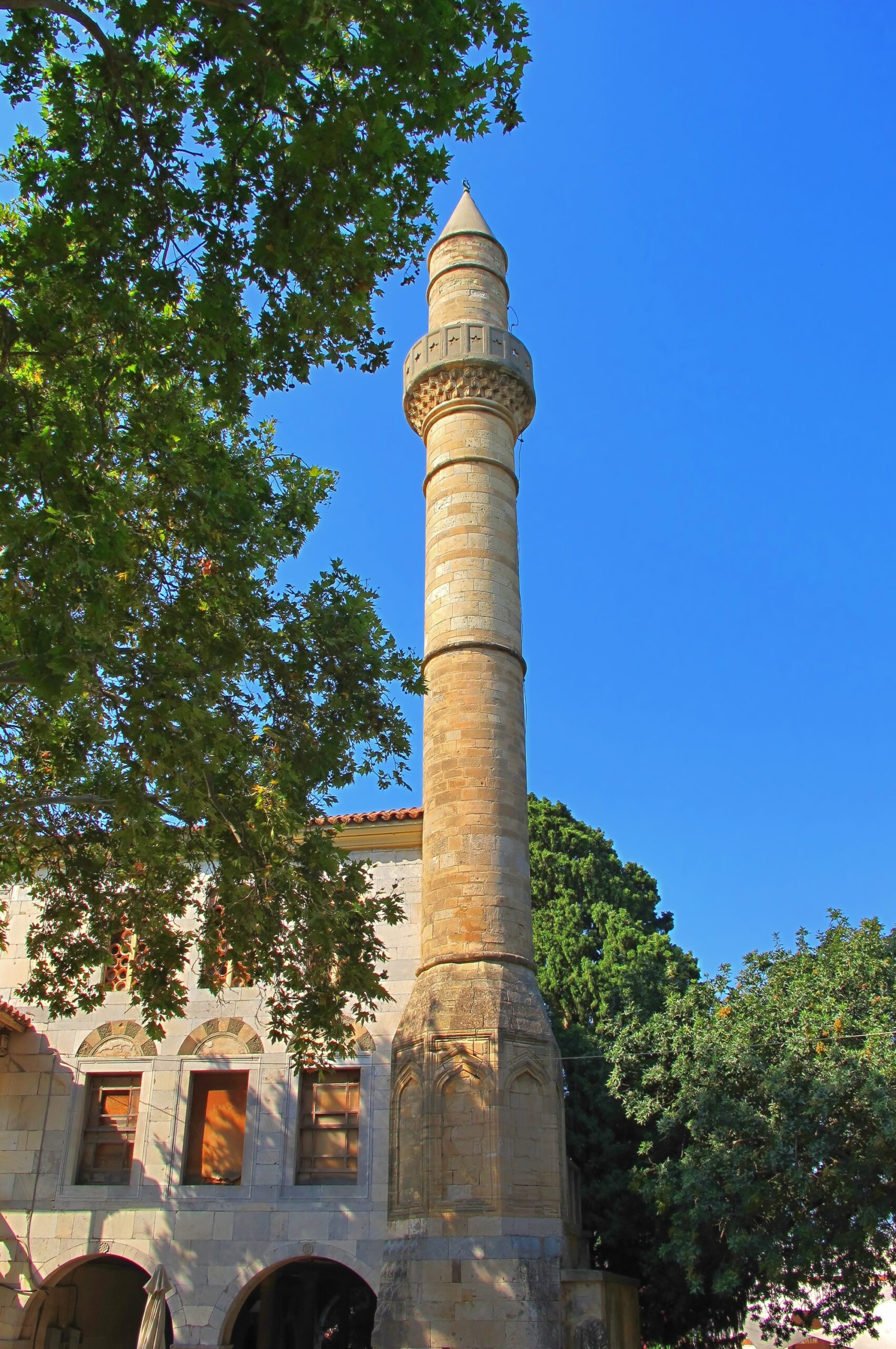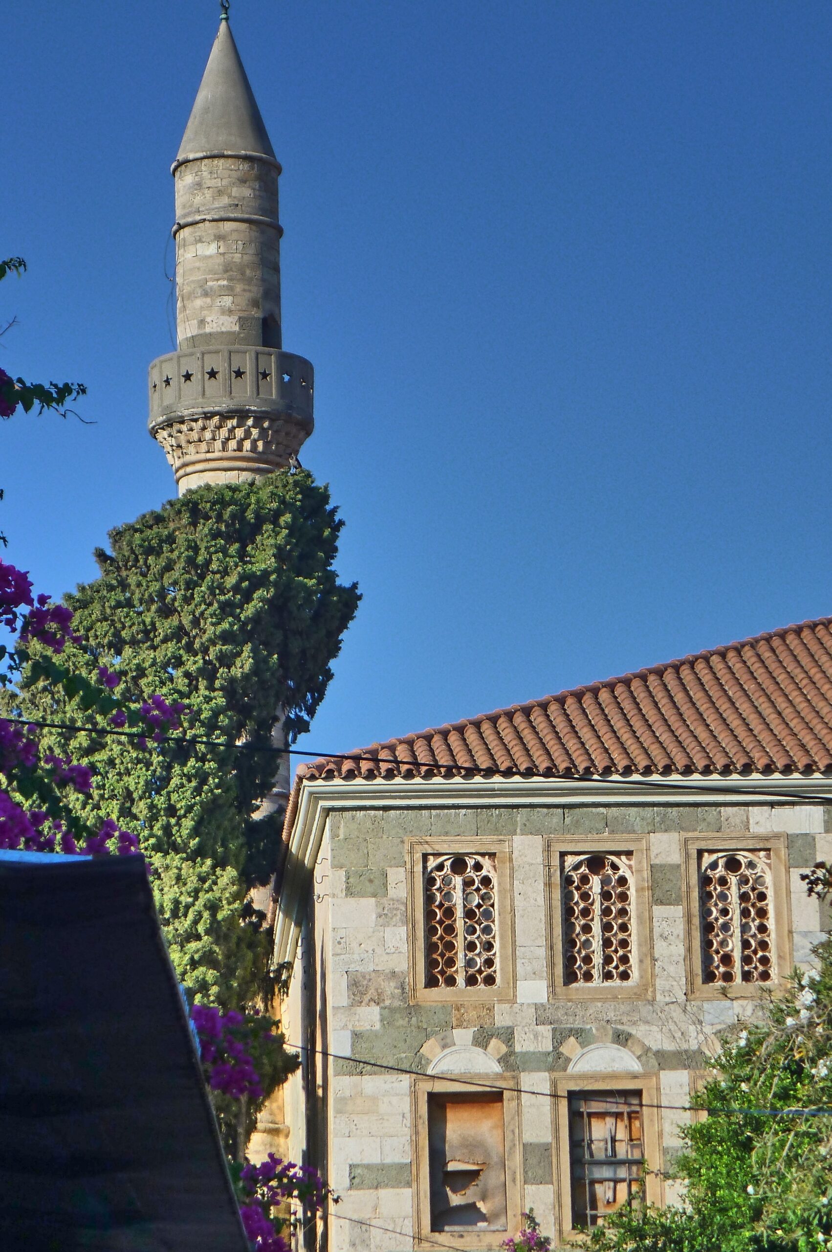 A mecsettől északra található Nerátzia erőd, körülbelül 60 méterre, keleten pedig körülbelül 30 méterre található a Kósz kormányzói palota. Az Agora régészeti lelőhely délről közvetlenül határos a mecset területével. A délkeletre fekvő egykori török ​​fürdő mintegy 50 méterre található. Ezt a mecsetet 1786-ban építette Kósz iszlám közössége Cezayirli Gazi Hasan pasa, Kosz Kapudan pasa támogatásával. Az építkezés során a római és bizánci időkből származó egyéb épületekből származó építőanyagokat használtak fel. A mecsetet állítólag a Szent György tiszteletére szentelt keresztény bazilika alapjaira építették.
