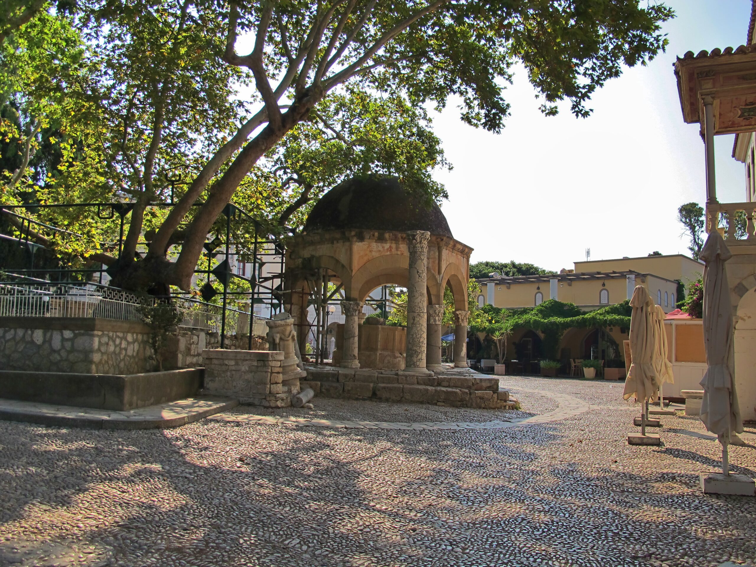 A mecset a Platia Platanou-n található, szemben Hippokratész platánfájával (ezért platánmecsetnek is nevezik), Kósz városának közepén. Az épület kb 4 m tengerszint feletti magasságban van. Körülbelül 100 méterre van Kósz városának Mandraki kikötőjétől.