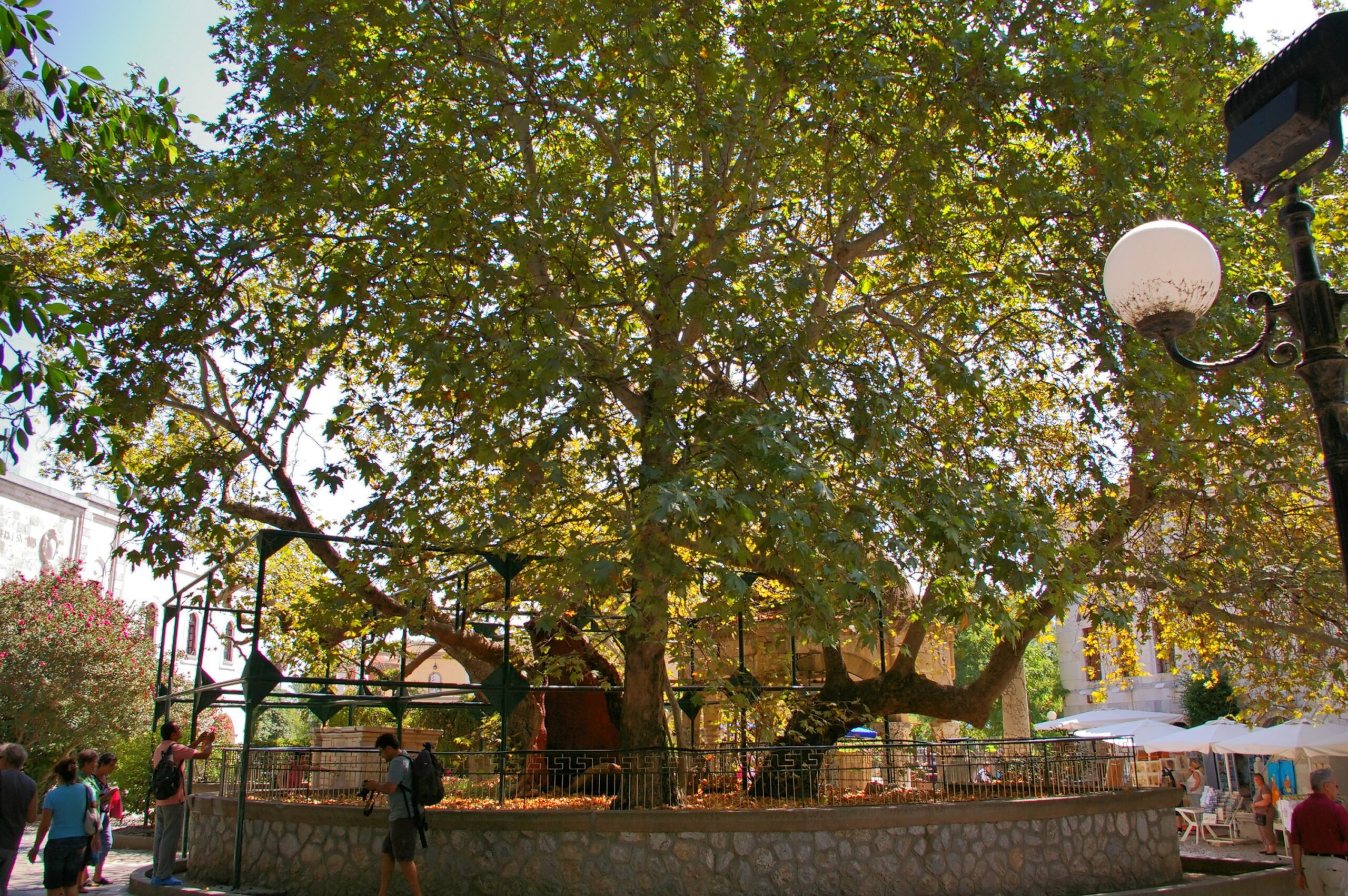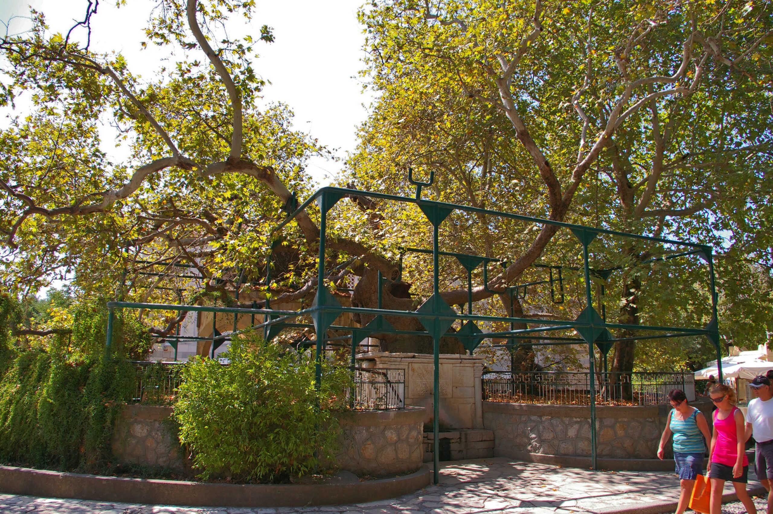 A fa mellett két oszmán szökőkút található, amelyek vize a feliratuk szerint Hippokratész forrásából származik.