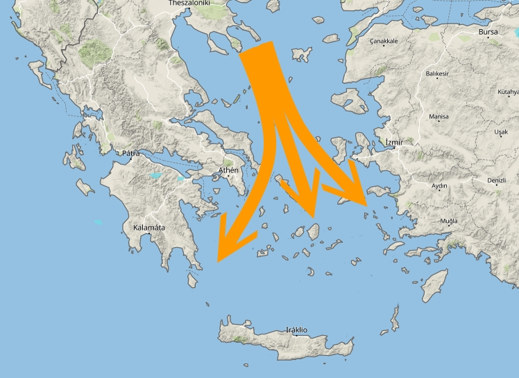Minden évben május végén és június elején megindul az enyhe északi szél, az úgynevezett prodromi. Egy héttel később megérkezik a nyári szél, mérsékelve a nap melegét.
