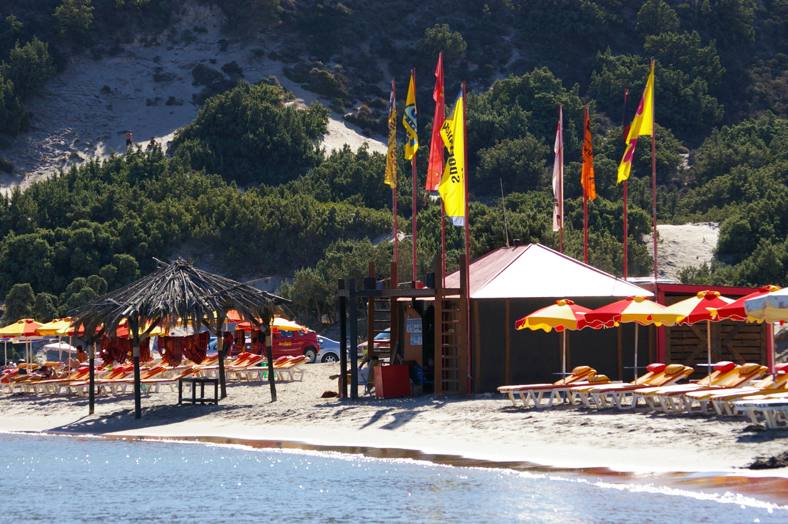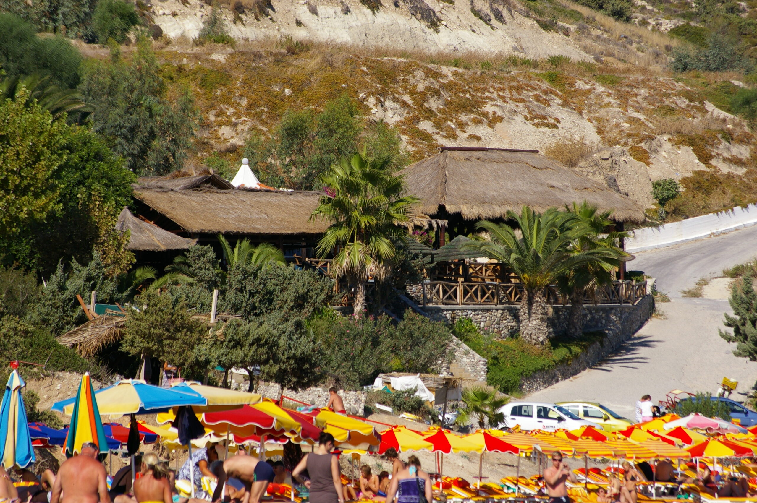 A domb lejtőjén a Paradise Beach étterem található, klasszikus görög ételeket és nemzetközi harapnivalókat kínál, teraszáról pedig csodálatos kilátás nyílik a Paradise Beach öblére és a pálmafákkal szegélyezett ösvényre, a strandra.